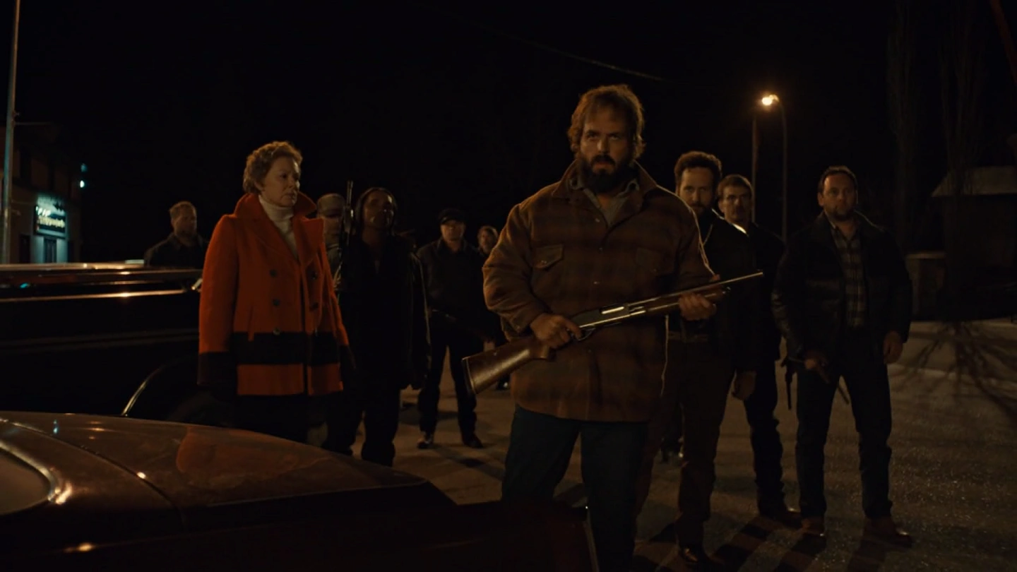 The Gerhardts arrive in Sioux Falls at the same time as Lou, who frantically calls the State Patrol on his radio, his warning going unheard. As the Gerhardts silently kill the state trooper on watch, Hank, restless, gets out of bed. The Gerhardts burst into every occupied room at the same time, killing everyone except an on-guard Hank, a Peggy-alerted Schmidt and the Blumquists, and a few troopers playing late-night poker. Hanzee stabs Floyd to death just as Bear realizes Dodd is not in the motel, and he charges Hanzee until Lou shoots him in the side of the head. Despite shooting him multiple times, Bear pins him to the ground and chokes him. Hanzee wades into the fight, firing indiscriminately on Gerhardt soldiers and state troopers, wounding Hank.